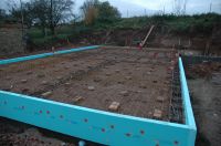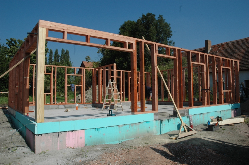 Dřevostavba je postavena na základech z betonových pasů a na železobetonové desce o výměře cca 80 m2.