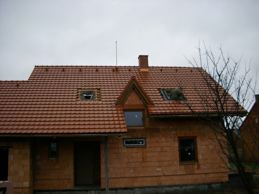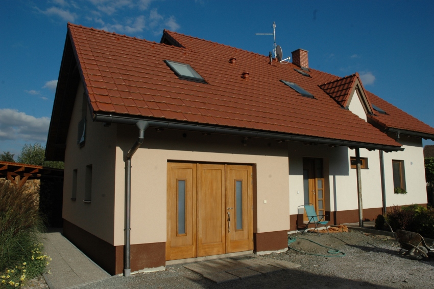 Konstrukce domu je tvořena ze smrkových fošen a opláštění je z osb desek následně zateplených izolací o tl. 100 mm.